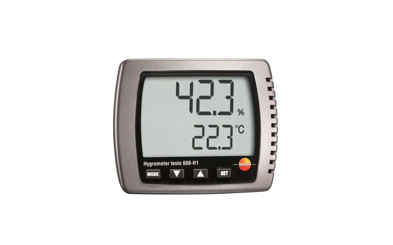 The testo 608-H1 thermohygrometer is ideally suited for continuous measurement of the indoor climate. You can therefore use the measuring instrument in locations such as offices, warehouses, laboratories, garden centres or living areas to determine temperature, humidity and dew point. The hanging and standing brackets enable you to either hang the thermohygrometer on the wall or to place on a table or a shelf.