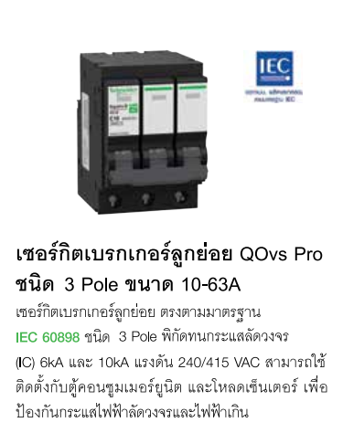 เซอร์กิตเบรกเกอร์ลูกย่อย QOvs Pro ชนิด 3 Pole ขนาด 16-63A สำหรับคอนซูมเมอร์ยูนิต และโหลดเซ็นเตอร์
