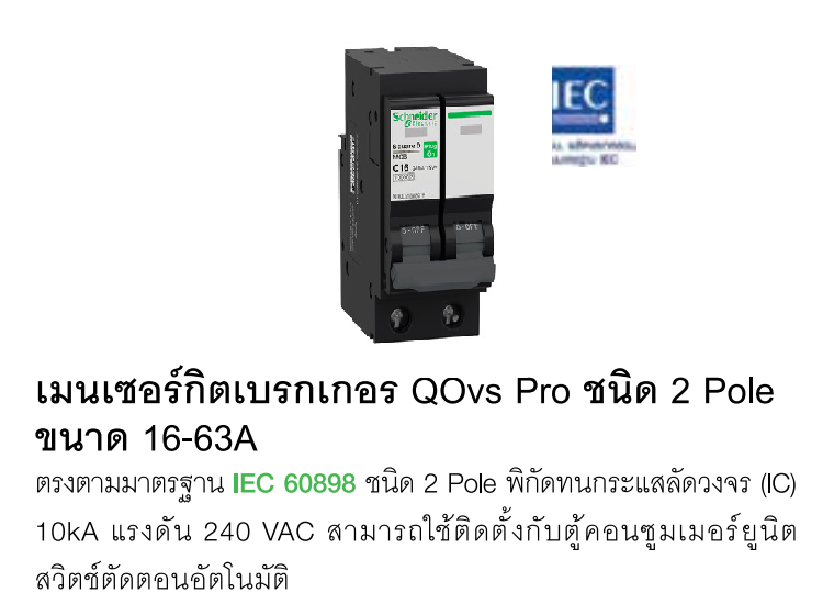 เมนเซอร์กิตเบรกเกอร์ QOvs Pro ชนิด 2 Pole ขนาด 20-63A
